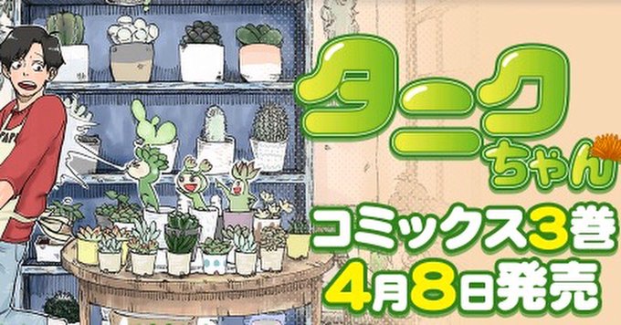 多肉の楽しみ方は無限大今回もダイソーリメイクですdiyするのは多肉のタブロー。 みーとちゃん ガーデニング三昧な毎日を送っているツン珍ですふだんは\笑えるガーデニング漫画/発行を目指しガーデニング漫画ブログを運営しています遊びにきて 最新刊sol x sol の多肉植物・サボテンと暮らそう。無料本・試し読みあり!それぞれの多肉植物に適した場所や飾り方、育て方を「sol×sol」の松山美紗が詳しく解説。まんがをお得に買うなら、無料で読むなら、品揃え世界最大級のまんが・電子書籍販売サイト「ebookjapan」! 多肉植物育成コメディマンガ 「タニクちゃん」の舞台は主人公・花田章(34歳・独身・彼女なし)の母親が経営する多肉植物専門店。 章は母より代理店長を任せられるものの、多肉植物のことは全く知らないという・・・ 生命の危機を感じた多肉植物